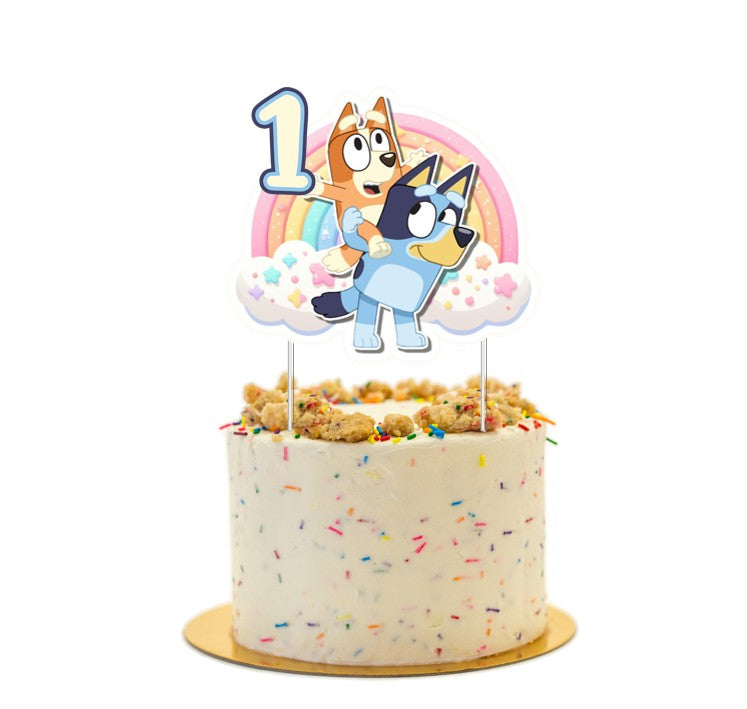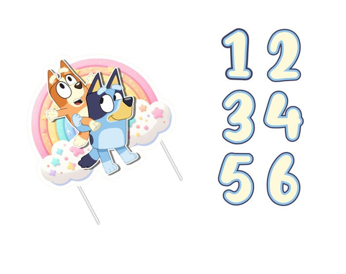 Bluey Cake Topper in pretty pastel colors. Assembled and Ready to use. Available ages 1-6.