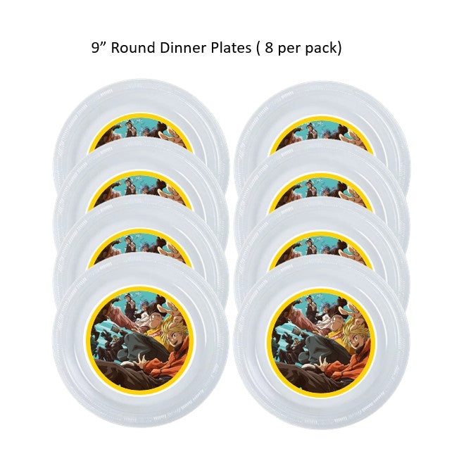 Sakamoto Days party plates. Made in clear plastic. Party Plates available in 7" dessert or 9" dinner plates size. 8 plates per pack.