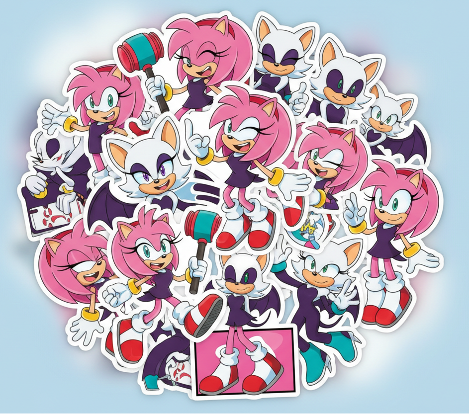 12 Amy Rose and Rouge Random Stickers. Perfect for to add to your goody bags as a party favor.